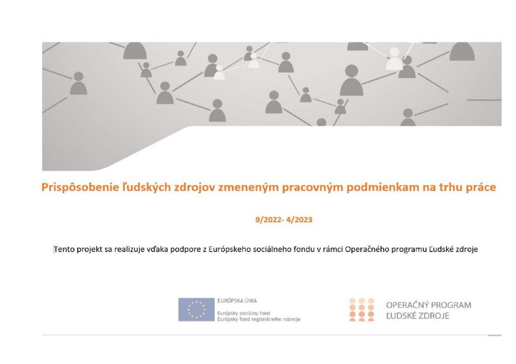 Spoločnosť ProCS, s.r.o. realizuje v období 09/2022 – 04/2023 projekt s názvom „Prispôsobenie ľudských zdrojov zmeneným pracovným podmienkam na trhu práce“